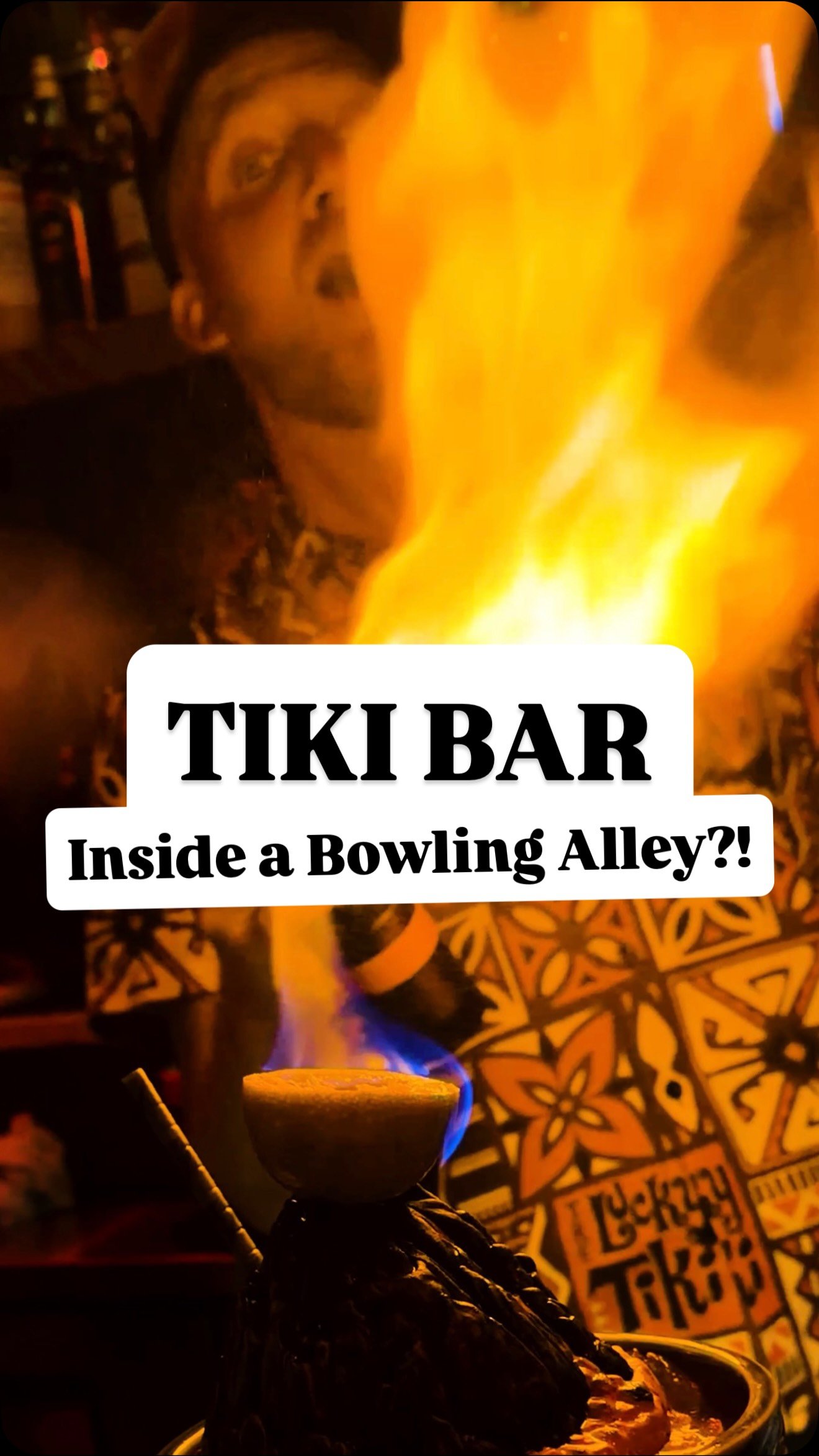 We accidentally found the most unhinged tiki bar…in a bowling alley 🍹🎳